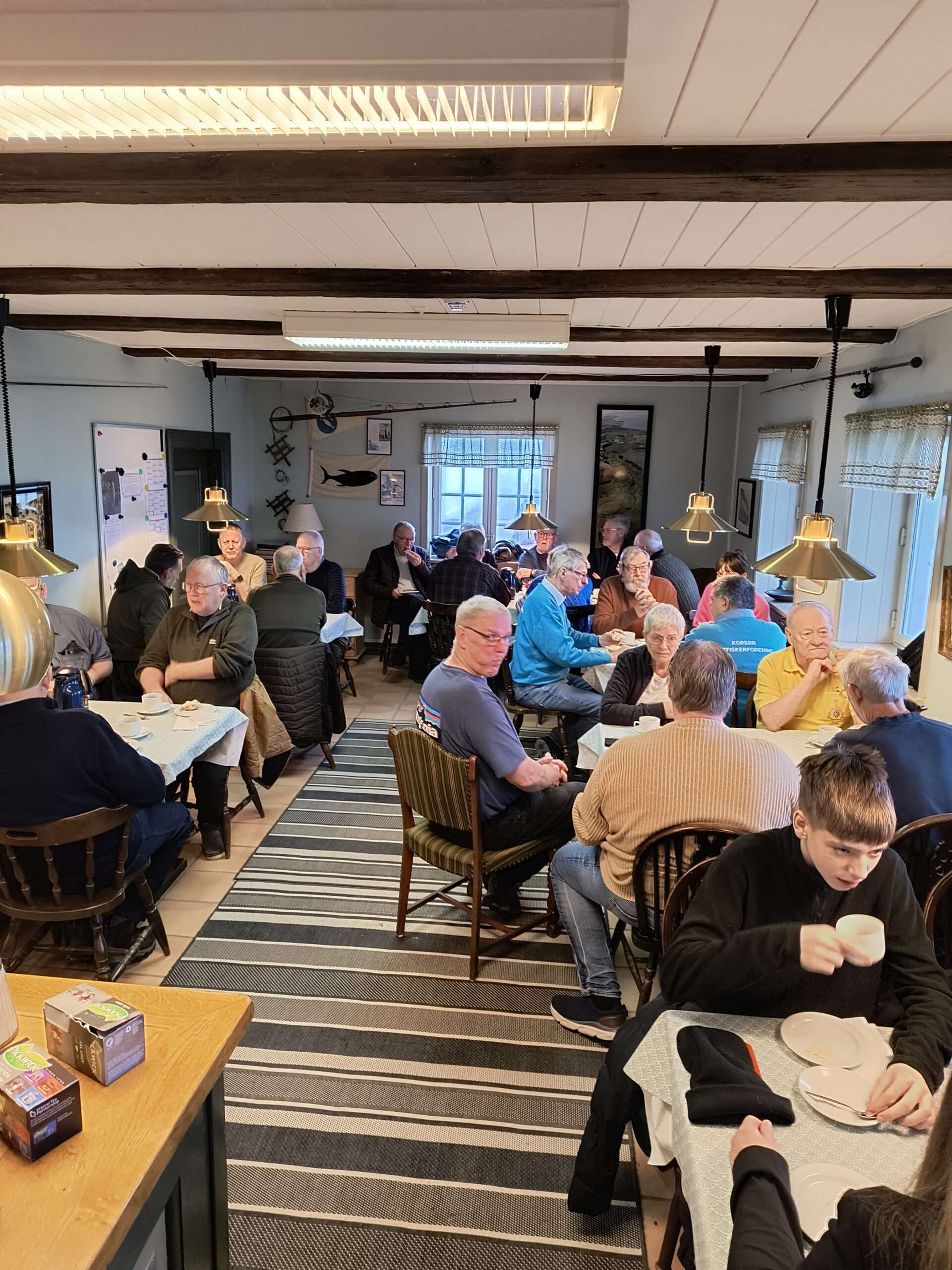 Så var det blevet tid til den dejlige morgenbuffet, hvor man fik fyldt maven for første gang. Imens gik snakken blandt medlemmer og medfølgende hustruer og børn. Det er virkelig dejligt når der er nogen der ikke har hørt alle historierne før – så er man fri til at give dem endnu et lille tvist.