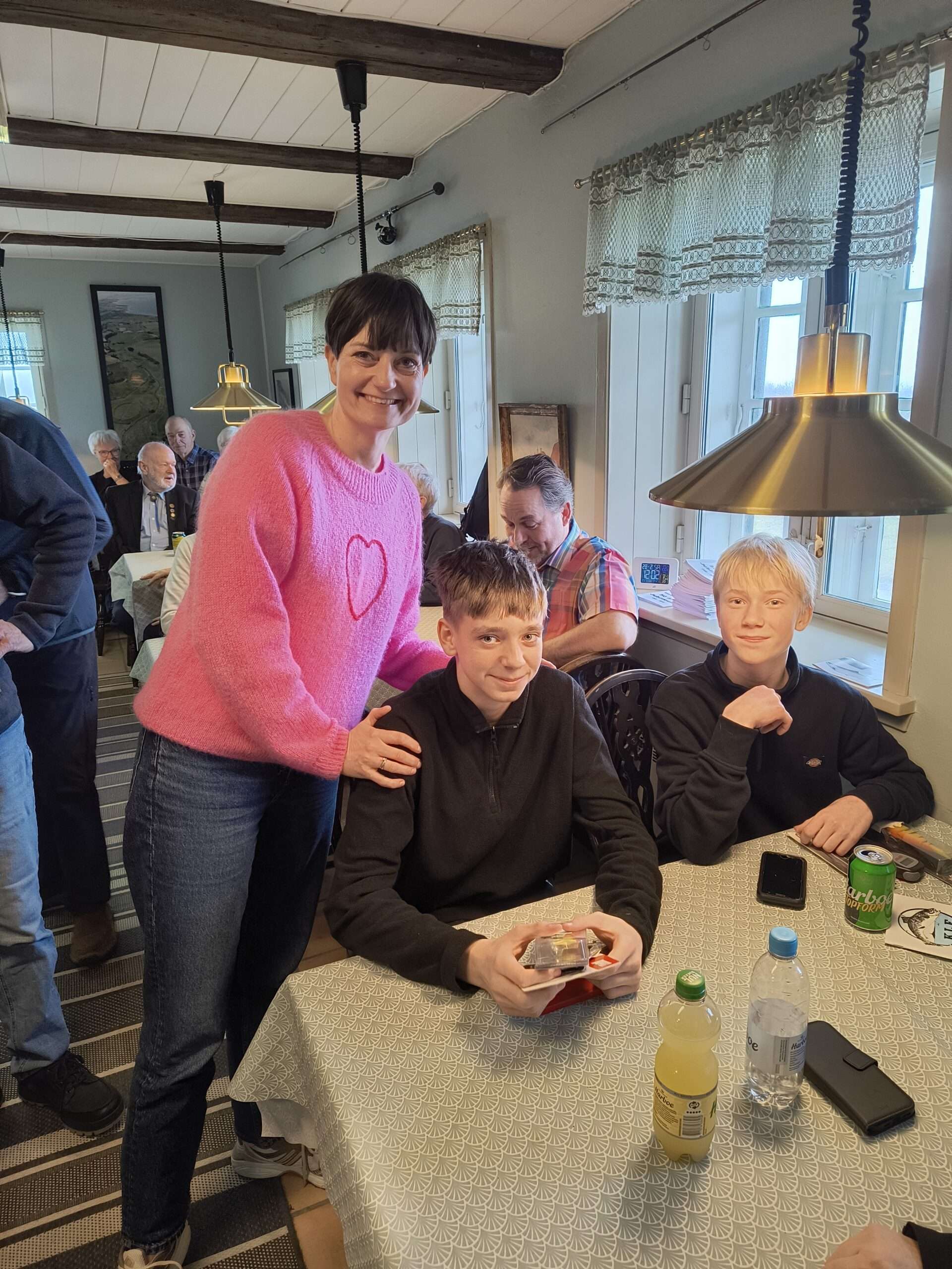 En fiskekonkurrence var også på programmet. Og det var da meget heldigt der kom et par af vores nye juniorer – for når der bliver budt på socialt samvær i Revhuset, er det lidt svært at få seniorerne til at forlade de lune lokaler – især når det småregner og blæser lidt. Begge juniorer fik flotte præmier for flotteste, sødeste og sjoveste fisk. Billederne af ”de genudsatte” fisk blev tjekket af den til lejligheden udnævnte dommer, der i det civile liv er politiassistent, og datter af Uffe Hasselby. Men selv en politibetjent kan lade sig narre af AI-genererede billeder, selvom Maria godt nok syntes fiskene lignede hinanden til forveksling (de var nok fra samme kuld).
