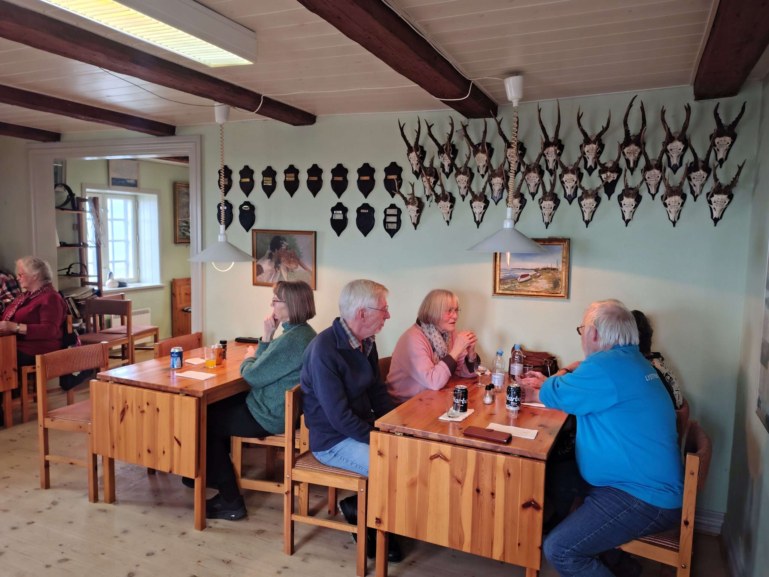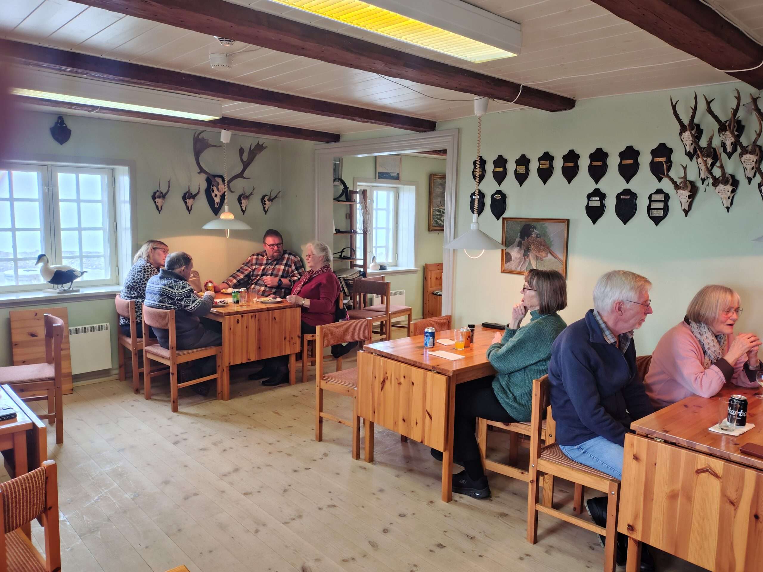 Kl. 12 var der kæmpe frokostbuffet, med alt hvad hjertet kan begære. Jesper Kassemester havde til dette punkt i dagens program entreret med sin svigerdatter Pia, der også er datter af en slagter, så der var udover sild og fiskefileter, masser af lækkert pålæg med tilbehør, og selvfølgelig en rigtig gammelost til at slutte af med – så fik jeg ikke flere kys den dag Vi var 50 personer til frokosten, blandt andet var også æresmedlem Michael Hemmingsen (tidligere mangeårig bestyrelsesmedlem og redaktør af Standpladsen) med hustru Jeanette kommet til, så en del måtte trække ind til jagtforeningens lokale, der var lånt i dagens anledning.