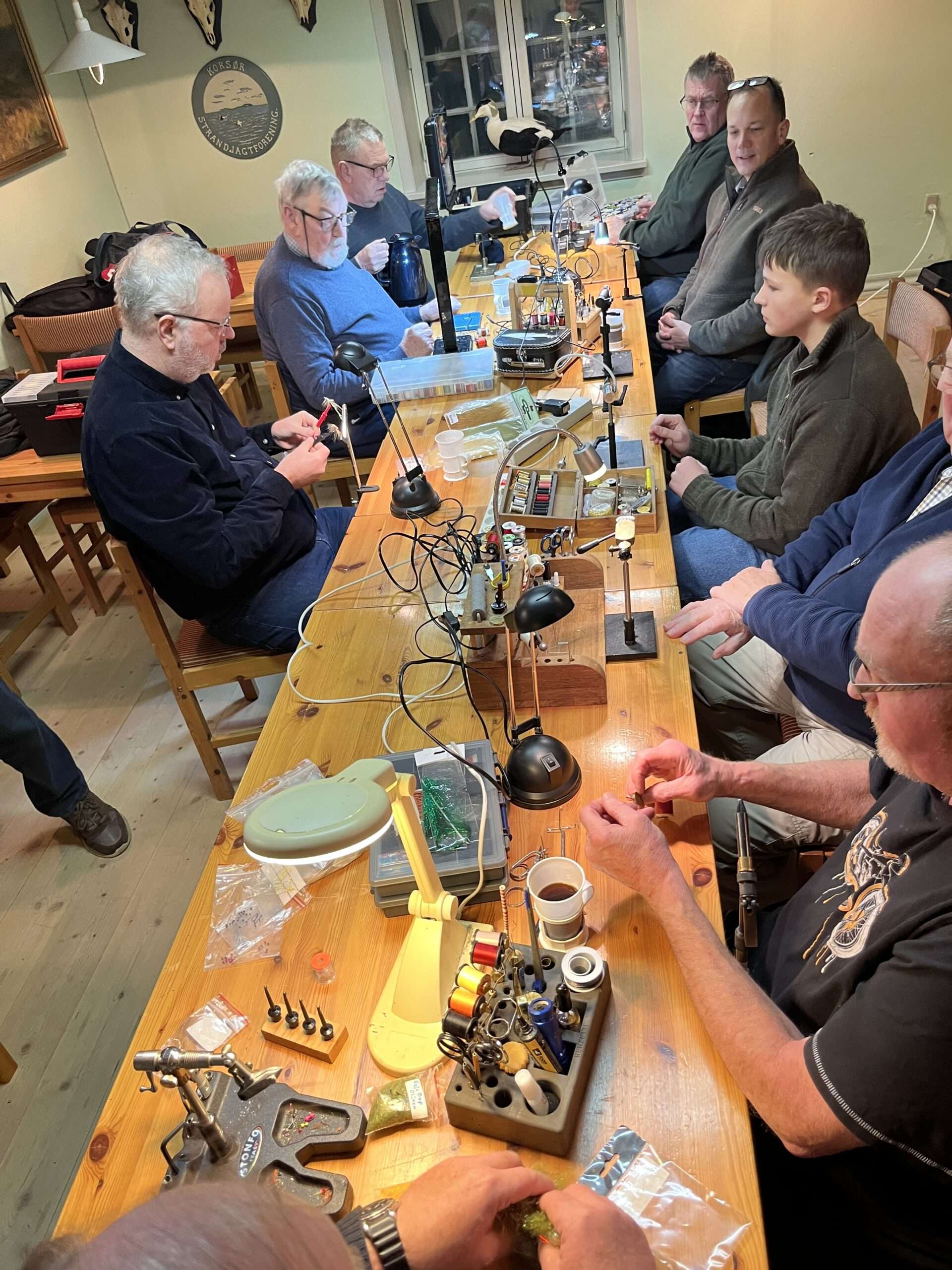 I aftes holdt Korsør Lystfiskerforening som sædvanlig klub aften. Denne aften var en af mange med fluebinding på programmet. I aftes havde vi den glæde at der mødte så mange op at vi måtte tage et større lokale i brug. Det er dejligt at der er så mange også nye medlemmer der vil binde fluer. Gert havde arrangeret at vi skulle binde en “svæveflue”. Den var meget svær for vores nye fluebindere. Næste gang (om fjorten dage) må vi huske at binde nogle mere simple fluer, så de nye ikke mister modet ved fluebinding. Næste uge er det Peter Stolze der vil komme og fortælle om fluefiskeri.