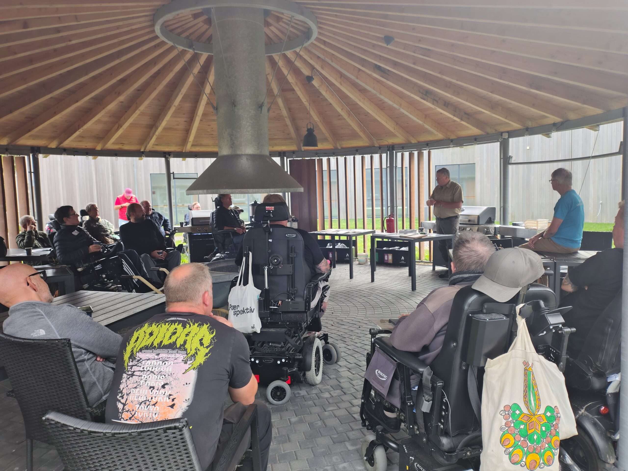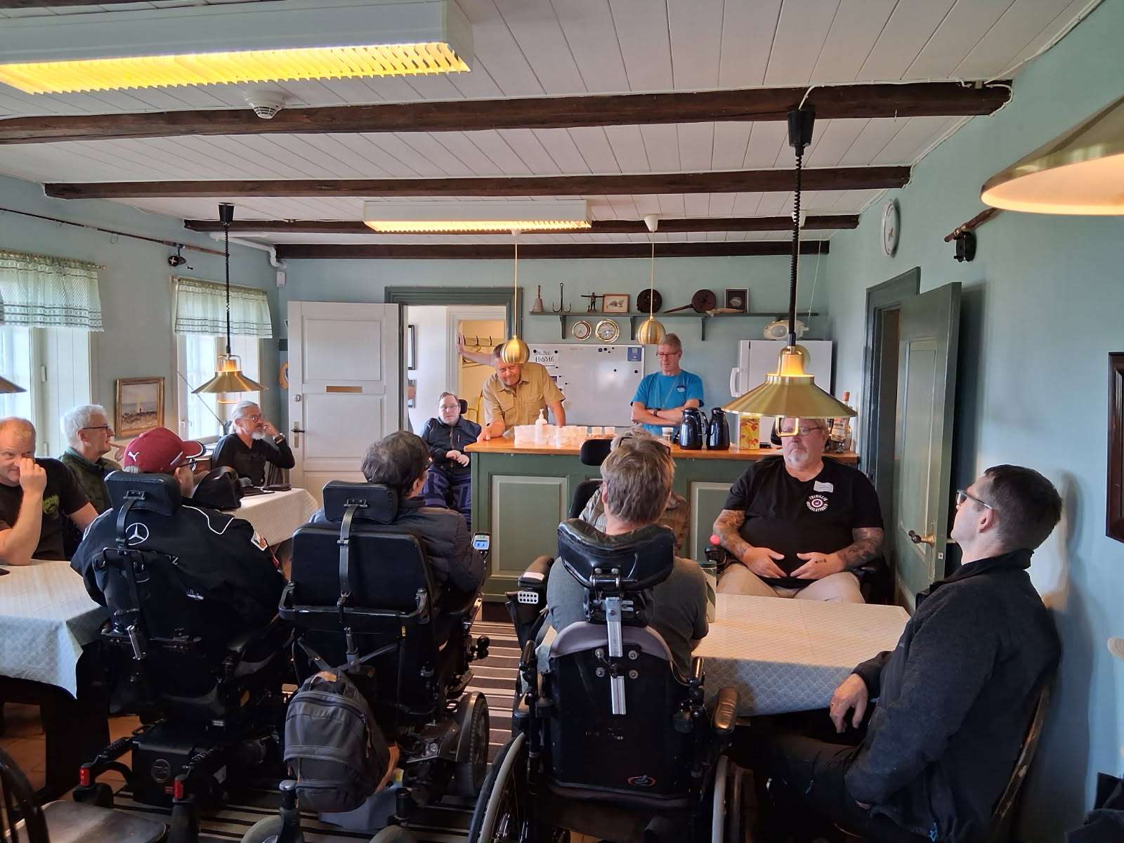 plads til de 10 tilmeldte og deres hjælpere (dagens deltagere var alle kørestolsbrugere)