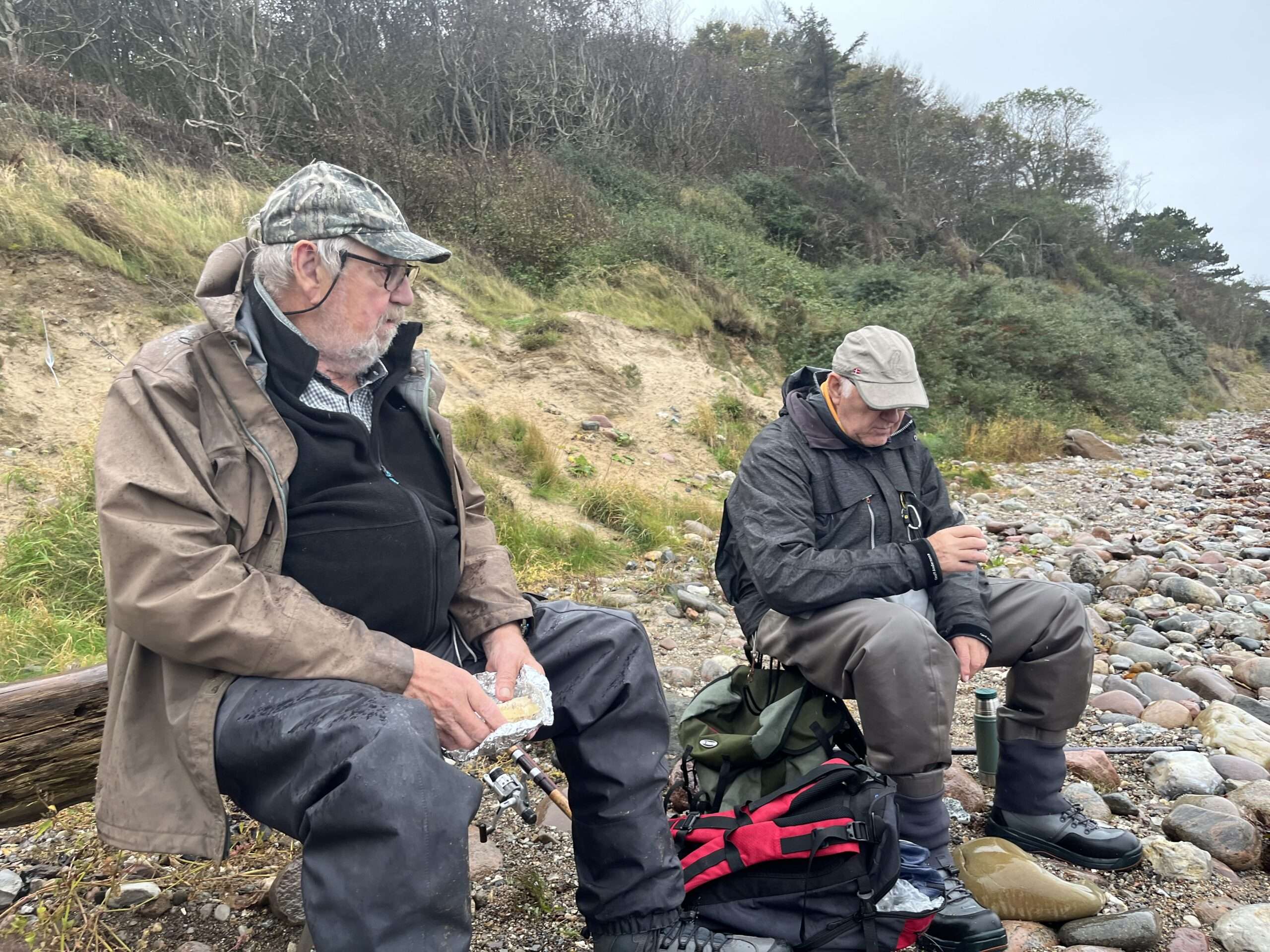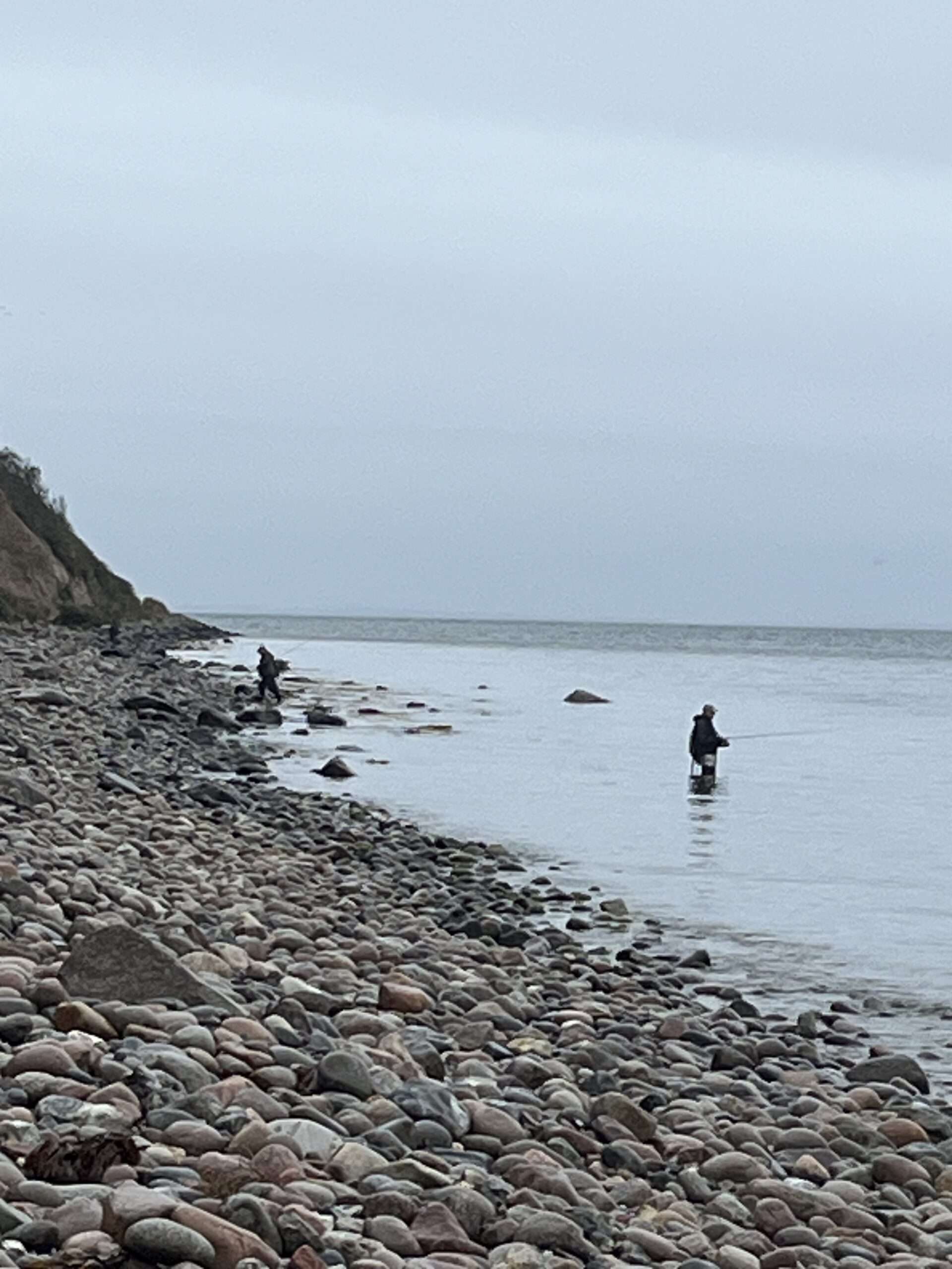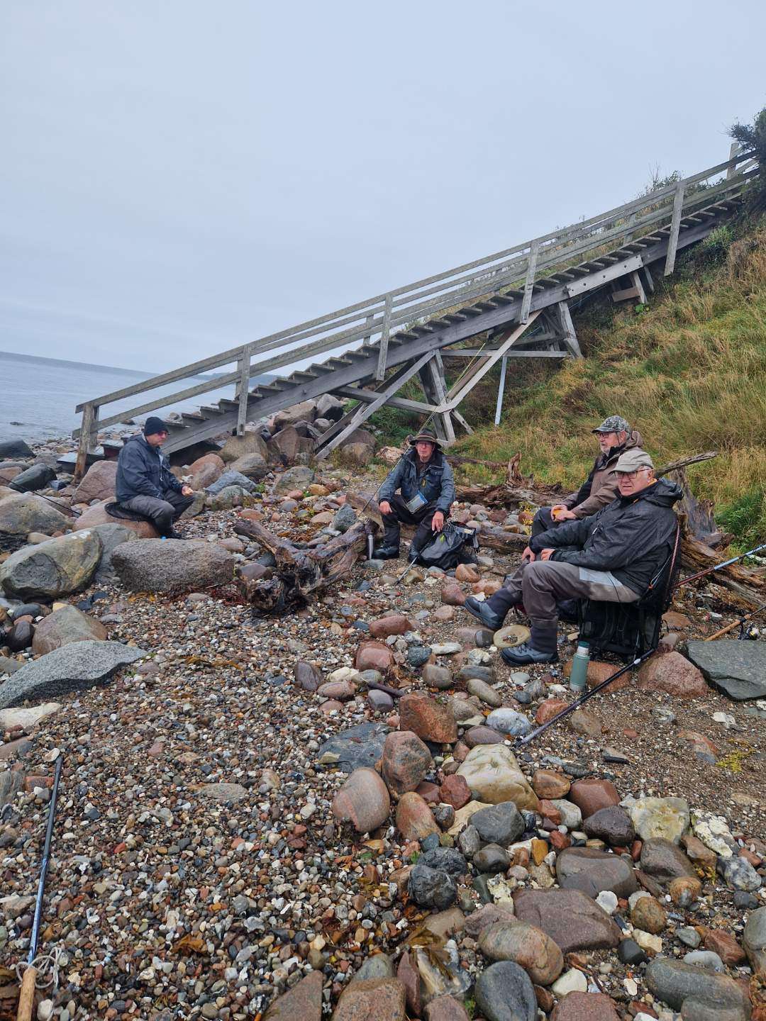 For tirsdagen lovede vejrudsigten heldigvis tørvejr indtil middag. Vinden var i det sydøstlige hjørne og meget svag, så et perfekt sted at fiske blev Røsnæs. Der var megen morgentrafik på vejen mod Kalundborg, så det var med at være i god tid. Da klokken var 9, var 5 mand mødt op til perfekt fiskevejr. Lette krusninger på vandet og næsten ingen vind. Alle gik ned ad trappen med de 42 trin til stranden. Man skal have vadestokken med, for man gik i håndbold store sten. Der kom hurtigt gang i fiskeriet og Uffe havde hurtigt en lille undermåler på land. Den måtte ud igen. Senere fik Hans en større havørred på. Med et mål på ca 30 cm, måtte den også ud igen. Jan fangede også et par undermålere, og Claus havde en følger, hvor det blev ved det Jeg havde et enkelt godt hug og ikke mere. Det bedste var dog Hans, som havde en god fisk på krogen, og kunne lande en flot havørred på omkring 42 cm. Så alt i alt en ganske god dag med fisk på krogen. Dmi havde lovet regnvejr til middag, og det holdt stik. Så ved halvettiden kørte alle hjem.